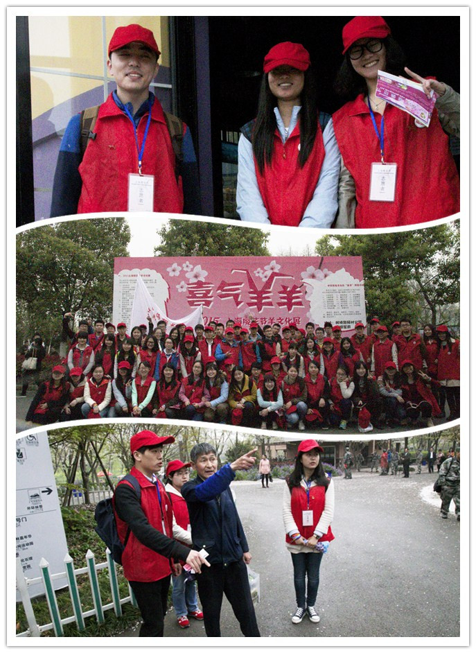 满怀期待的迎来了4月4日的清晨,伴随着清脆悦耳的电话铃声,志愿服务的热情和精神在"morning call"中得以唤醒,并将继续传递。七点钟,志愿者在上海大学北门集合,清点好人数,整理好队伍,在姜志强等核心团队成员的带领下,同乘地铁前往顾村公园。将近七点半,所有志愿者安全到达顾村公园,丁老师将志愿者所需的衣服、帽子、工作证、矿泉水等发放给负责人。简短的晨会过后,大家身着红色的志愿者服装,头戴小红帽,佩戴樱花节志愿者象征物的徽章和五色腕带,在各支部书记的带领下,怀着无比欣喜的心情,向自己的岗位走去。68名身穿"红马甲",头戴"小红帽"的志愿者们,堪称顾村公园一道亮丽的风景线。