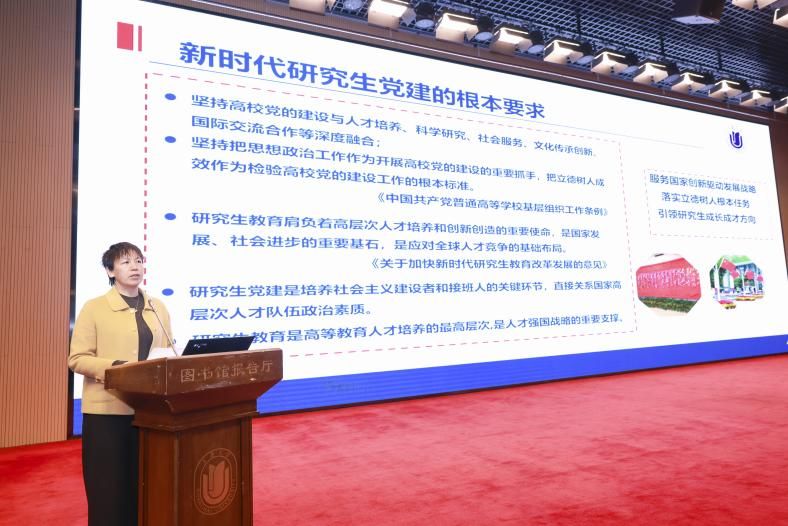 党委研究生工作部副部长席慧霞系统介绍了研究生党建加强主题教育、理论宣讲、先锋选树、领航培训、研学实践等方面的工作,并强调要进一步打造特色党建工作品牌。