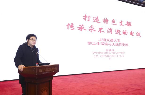 第三批全国高校“百个研究生样板党支部”、上海交通大学博士生微波与天线党支部蒋睿涵同学,分享党支部开展红色宣讲、线上线下联动激活组织活力等具体做法。东华大学马理硕党支部吴雯佳同学分享支部的“1+3+N”理论学习模式和闭环育人机制,借助多元平台使红色资源“活起来”。