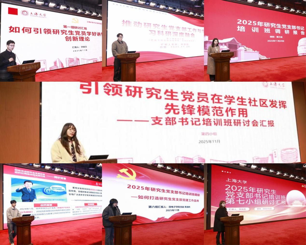 近日,上海大学2025年研究生党支部书记培训班举办,270余名研究生党支部书记参加培训。培训班采用专题报告、实务沙龙、案例分享、现场教学、交流研讨多种形式进行。