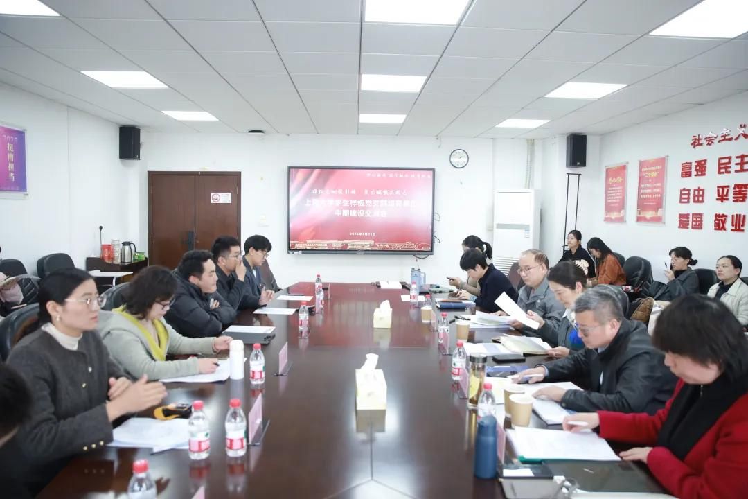 为充分发挥基层党组织战斗堡垒作用,强化样板党支部示范引领作用,促进我校学生党建工作进一步融合发展,近日,上海大学学生样板党支部培育单位中期建设交流会在宝山校区A楼404举行。党委本科生研究生工作部部长、本科生工作处处长、武装部部长陆瑾,党委本科生研究生工作部副部长、研究生工作处处长徐义圣,本科生工作处副处长马成瑶,研究生工作处副处长席慧霞,组织人事部组织处主管王武出席会议,各学生样板党支部培育单位支部书记、指导老师共同参与此次交流。